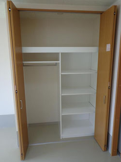 居室には大容量のクローゼットが備え付けてありますので、 たくさんの荷物を収納可能です。